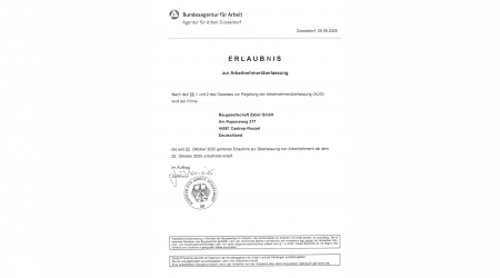 mehrNach den §§ 1 und 2 des Gesetzes zur Regelung der Arbeitnehmerüberlassung (AÜG) wurde der Baugesellschaft Zabel GmbH die Erlaubnis […]