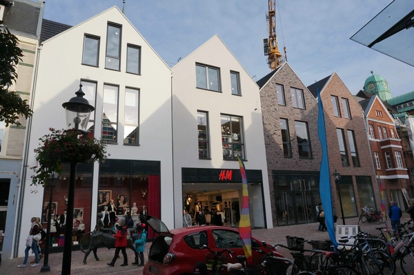 Umbau und Einbeziehung von drei denkmalgeschützen Häusern in das Einkaufszentrum Rathausquartier und Umnutzung in Verkaufsräume und Sozialräume für Läden.