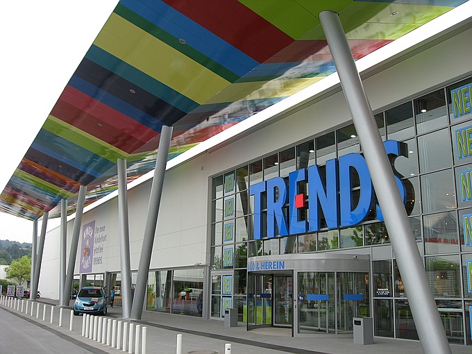 Erweiterungsbau für ein Möbelhaus in Witten. Im Zuge der Baumaßnahme waren auch umfangreiche Umbauarbeiten im Bestandsgebäude erforderlich. Außerdem wurde eine freistehende Vordachkonstruktion errichtet.