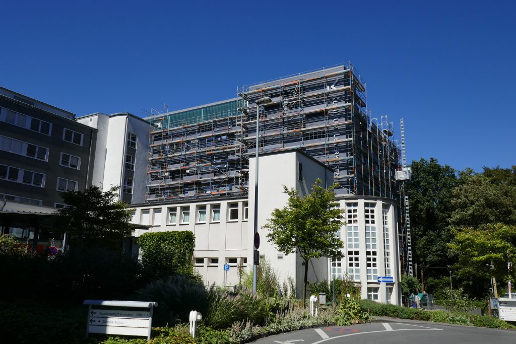 Aufstockung eines 2-stöckigen Bestandsgebäudes um dreieinhalb Etagen für Krankenhausabteilungen und eine Tagesklinik.
